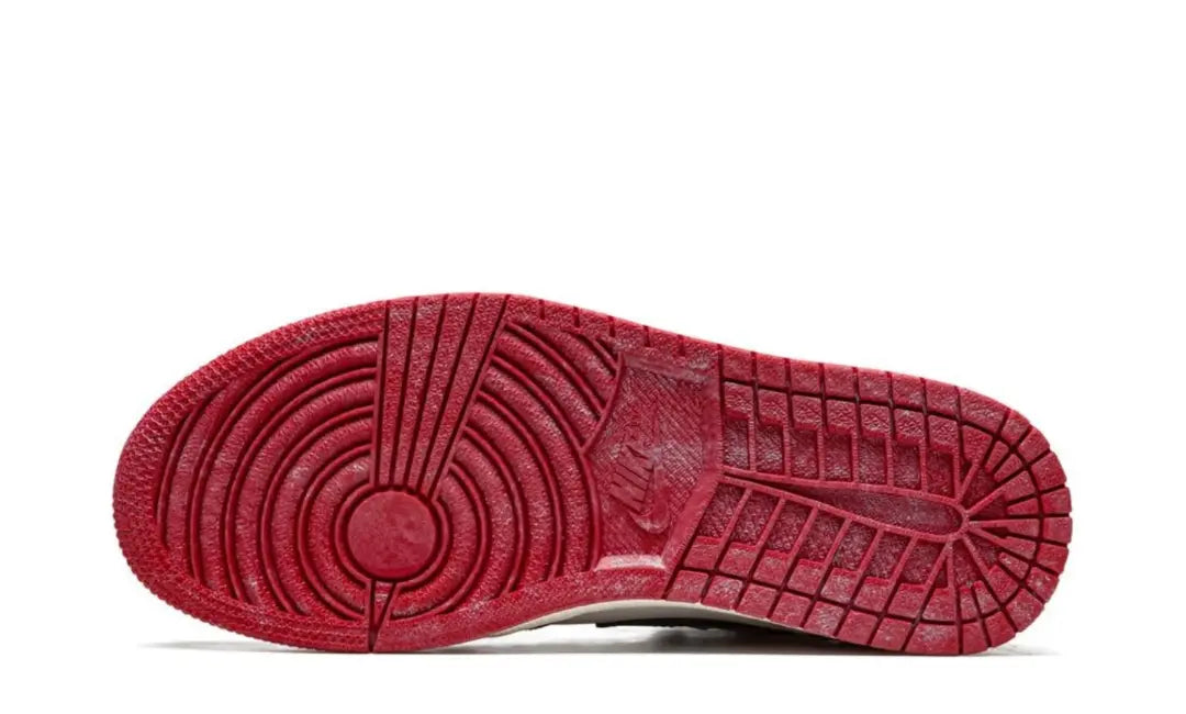 Cholewka wykonana z wysokiej jakości skóry w kolorach Varsity Red, Black, Sail i Muslin nawiązuje do barw Chicago Bulls. Popękany czarny kołnierz i przyżółkła podeszwa imitują naturalne procesy starzenia, co dodaje autentyczności i głębi. Dodatkowo, buty zapakowane są w specjalne pudełko z niestandardową pokrywą i dołączonym paragonem, co podkreśla koncepcję "Lost & Found"