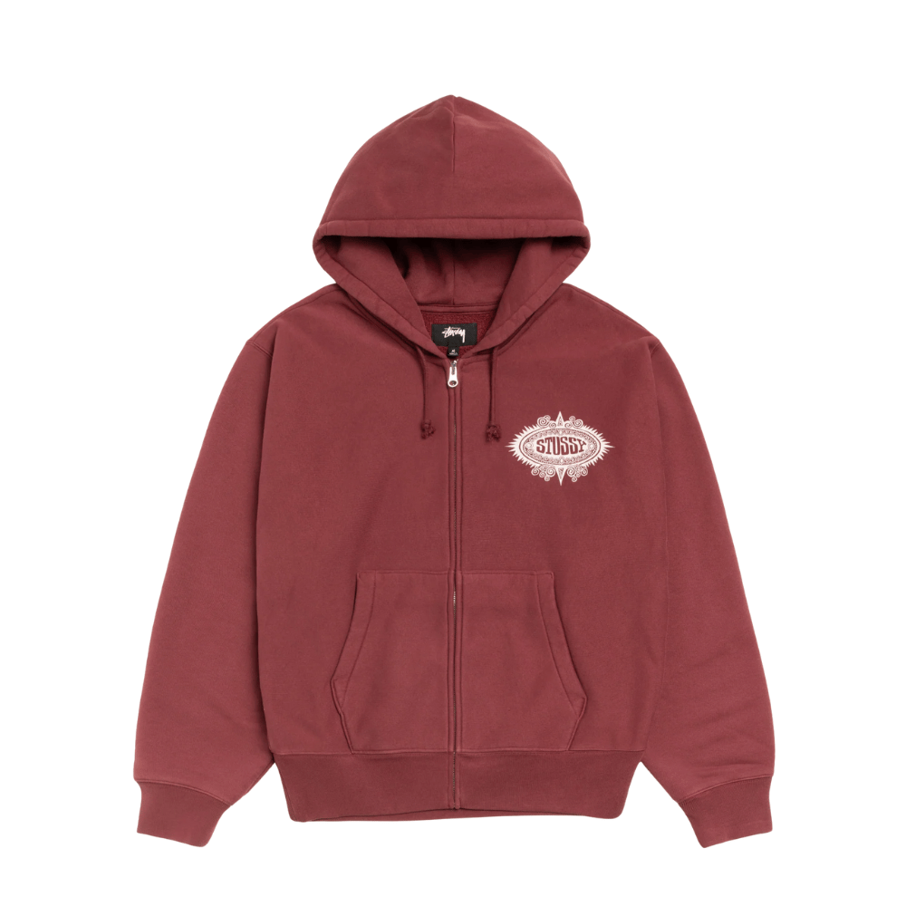 Bluza Stussy Mantra Zip Hoodie Burgundy