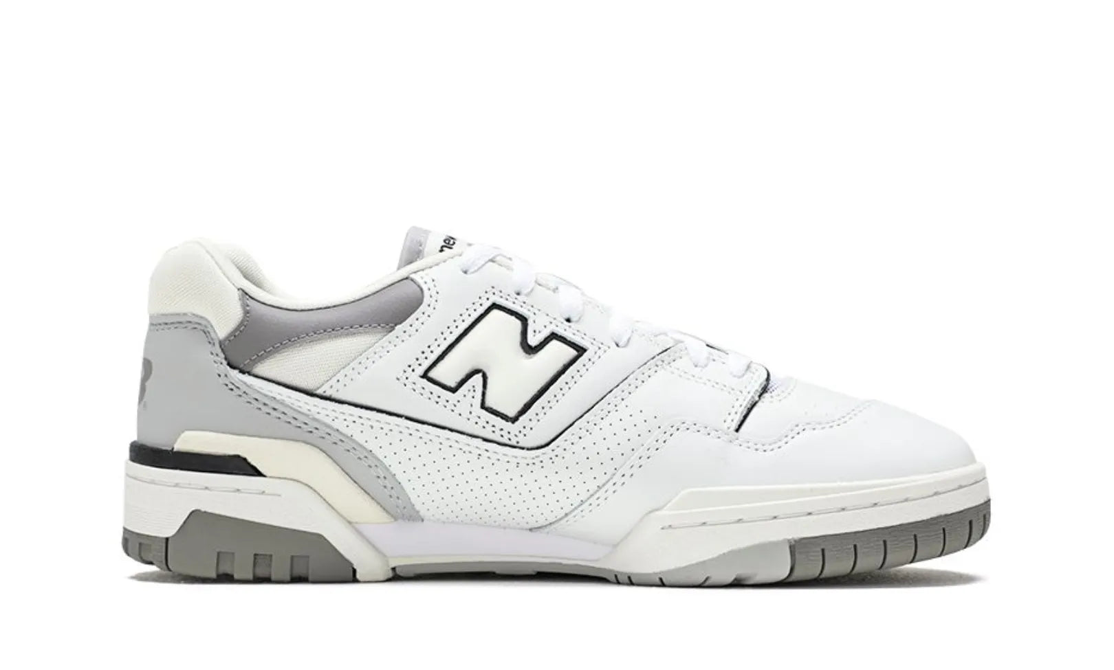 Model 550 Salt and Pepper wykonano z wysokiej jakości białej skóry z subtelnymi szarobrzmiącymi panelami, nadając materiałom fakturę i głębię. Detale w stylu vintage, jak postarzone logo „N” oraz siateczkowe perforacje, dodają butom charakteru retro. Lekka, elastyczna podeszwa i miękka wyściółka gwarantują wygodę noszenia przez cały dzień.