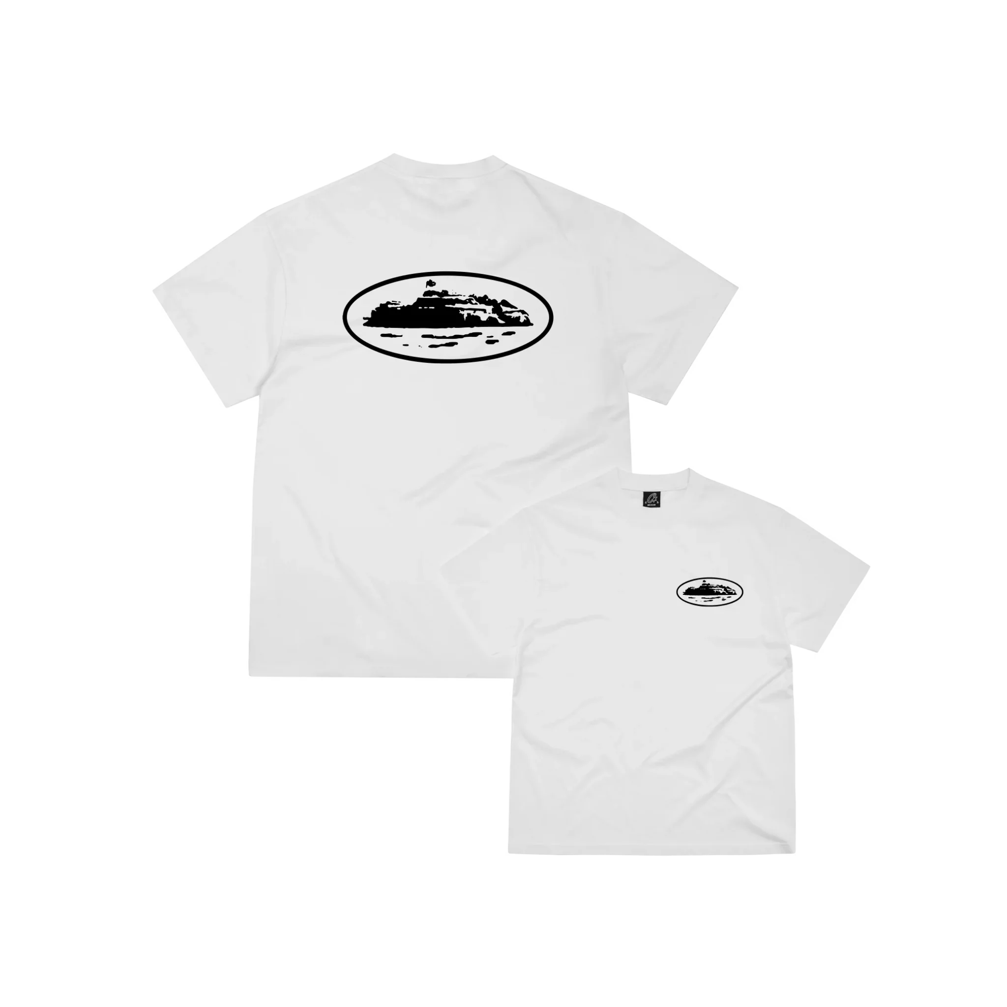 Biel to idealne tło dla ikonografii Corteiz. Ten model prezentuje klasyczne logo Alcatraz w kontrastowej czerni, umieszczone centralnie na klatce piersiowej. Ponadczasowy charakter tego zestawienia sprawia, że t-shirt jest niezwykle uniwersalny i łatwy w stylizacji. Wysoka gramatura bawełny gwarantuje, że materiał nie prześwituje i świetnie się układa.