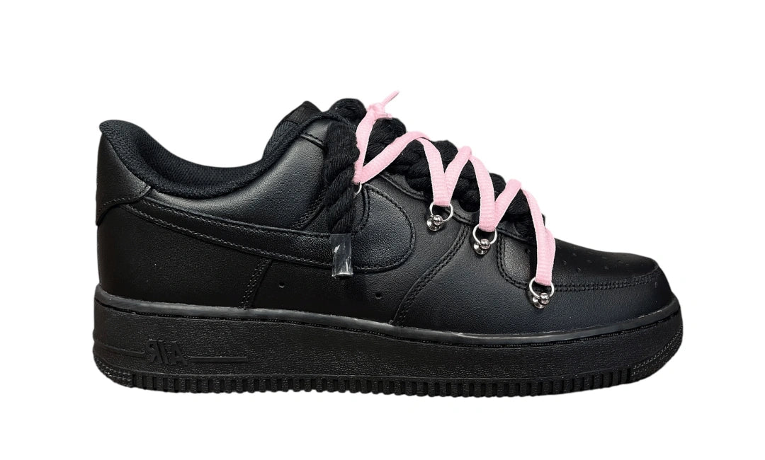 Air Force 1 Double Rope Black Pink kupisz wyłącznie w Street-Zone.pl. Każdy model to oryginalne Nike Air Force 1 custom z grubymi rope laces i kolorową dodatkową sznurówką.