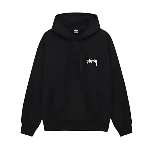 Stussy Fire Dice Hoodie Black to czarna bluza z kapturem, która wyróżnia się odważnym motywem ognistych kostek do gry na plecach, nadając jej unikalnego charakteru. Ikoniczne logo Stussy na piersi dopełnia styl, który doskonale wpisuje się w estetykę streetwear. Czerń bluzy sprawia, że jest ona łatwa do zestawienia z innymi elementami garderoby, a odważny nadruk dodaje jej wyrazistości.