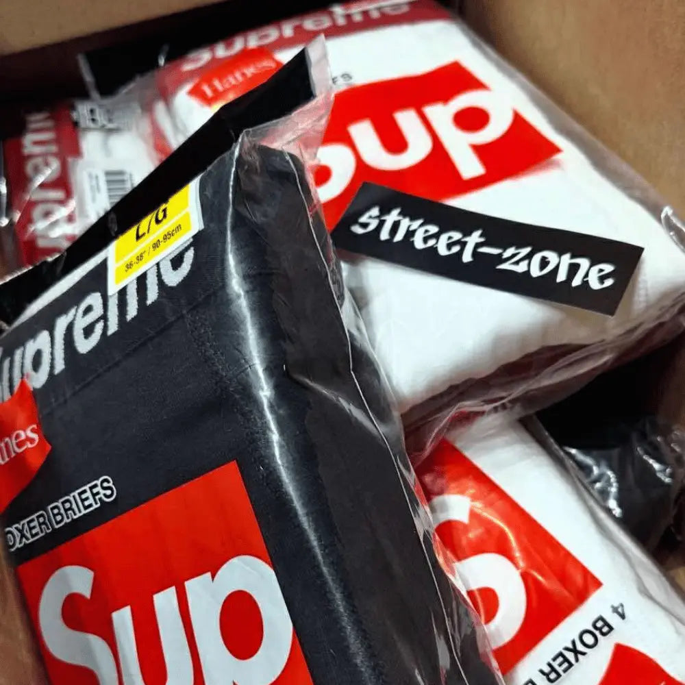Supreme Boxerski Hanes White to bielizna Supreme, która łączy w sobie klasyczny design z niezrównanym komfortem. Wykonane we współpracy z renomowaną marką Hanes, te białe bokserki Supreme oferują doskonałą jakość materiału i perfekcyjne dopasowanie. Dzięki zastosowaniu wysokiej jakości bawełny, bokserki Supreme zapewniają wygodę przez cały dzień. Subtelne logo Supreme na elastycznym pasie dodaje elegancji, a klasyczny biały kolor sprawia, że pasują do każdej codziennej stylizacji. Idealny wybór dla tych, którzy cenią zarówno komfort, jak i modny wygląd.