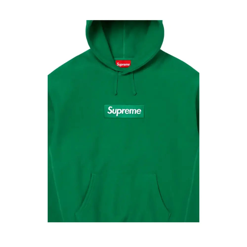 Supreme Box Logo Hoodie Green to hoodie, które rzuca się w oczy od razu. Zielona bluza Supreme z białym Box Logo to mocna kolorystyka dla osób, które lubią coś odważniejszego niż klasyczna czerń czy szarość.