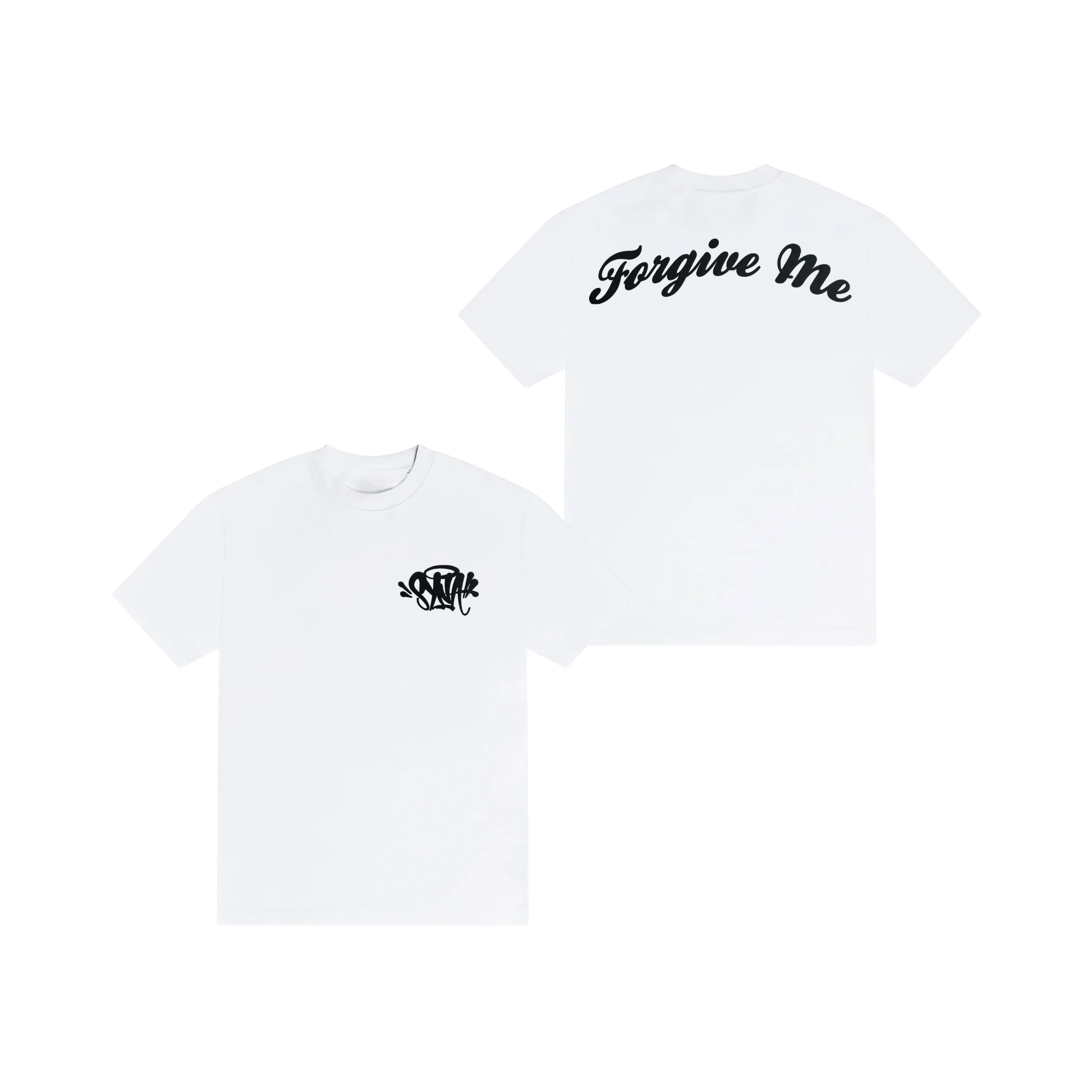 Biała koszulka z wymownym hasłem "Forgive Me". Czysta biel materiału stanowi idealne tło dla kontrastowej grafiki, która łączy w sobie elementy religijne i uliczne. To jeden z bardziej artystycznych projektów marki.